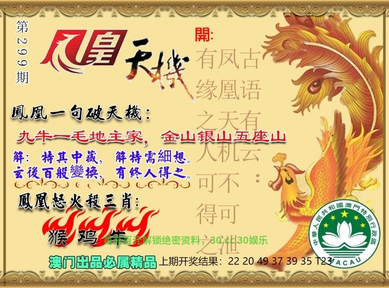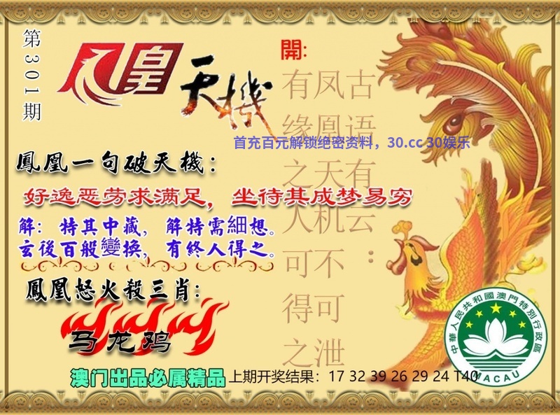 301期:天地两肖【地肖+猪兔】开:牛05错